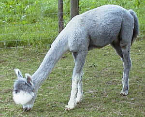LOLITA 13. Mai 2002 Nachzuchtstute aus der "Stamm-Mutter" von Eldorado Alpaca schwarz mit weissen Abzeichen |